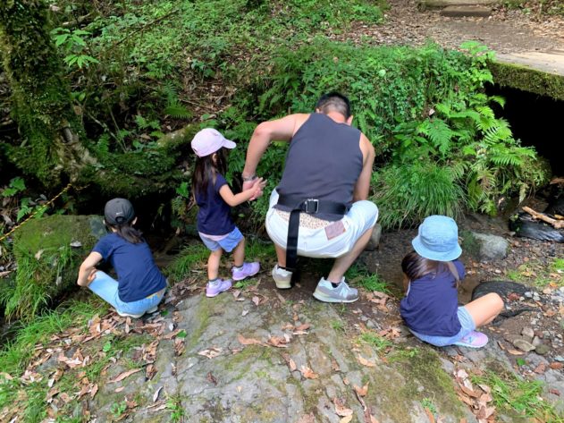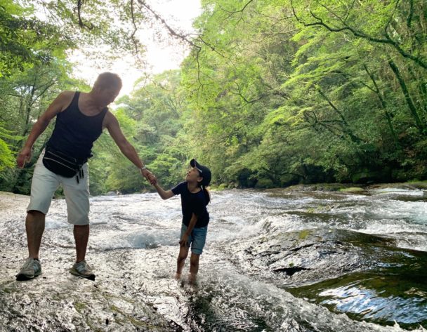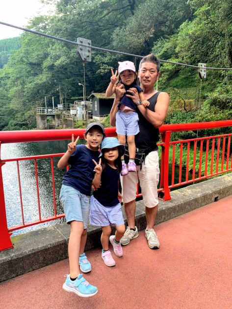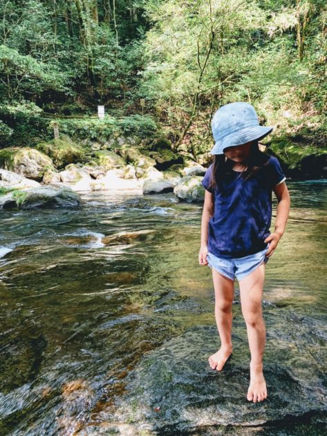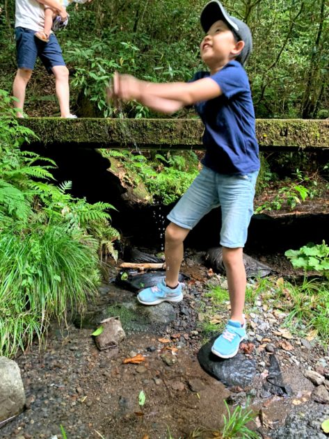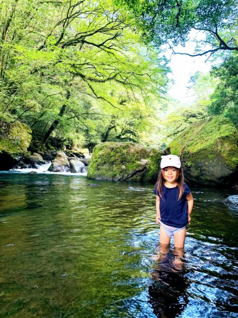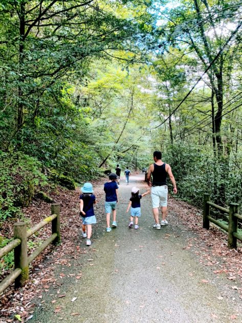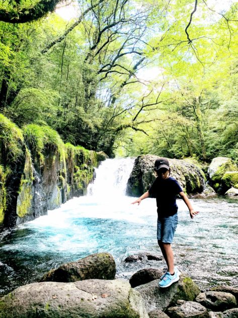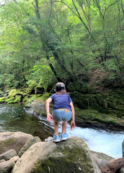 菊池渓谷は山の中なので、さすがにベビーカーは無理です。