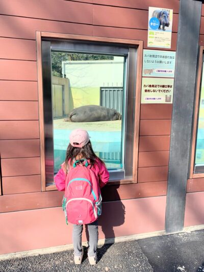 左の坂を上ると、みんな大好きカバさんの登場です。